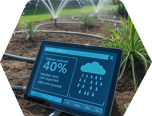 By analyzing soil moisture and weather conditions, the system delivers the right amount of water exactly when needed, reducing waste and saving up to 50% of water.