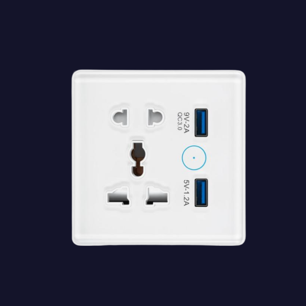A smart wall socket that combines a universal power outlet with two USB ports, one of which supports QC 3.0 fast charging. It allows you to easily charge devices, as well as control the power supply through your phone or automation.