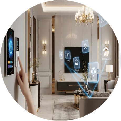 يستخدم هذا النظام ذكاءً اصطناعيًا متطورًا للتحكم السلس في بيئة المنزل.