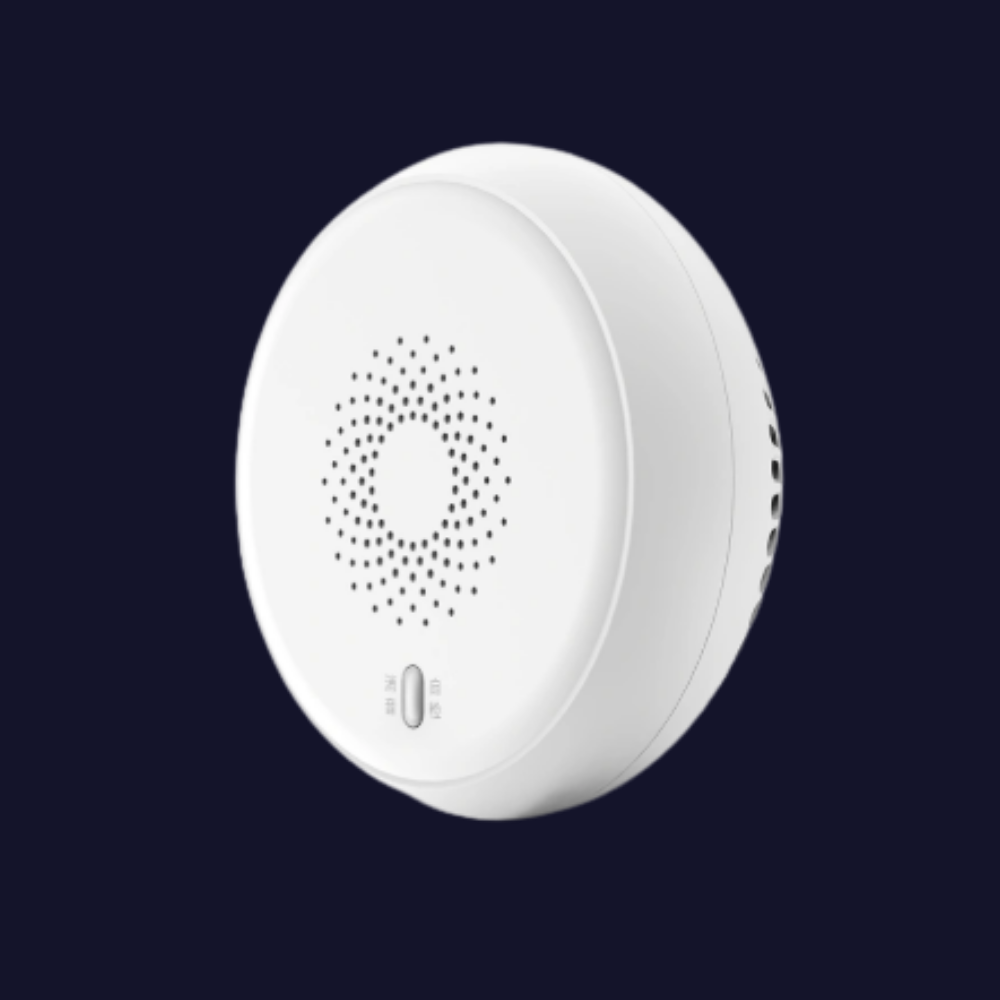 كاشف دخان ذكي يُستخدم للكشف المبكر عن الحرائق داخل المنزل أو المنشأة. عند رصد أي دخان، يُرسل تنبيه فوري عبر النظام الذكي، ويمكن ربطه بأنظمة الإنذار، فتح الستائر تلقائيًا، أو تفعيل الإضاءة للطوارئ. يُعد جزءًا أساسيًا في أي نظام أمان متكامل.